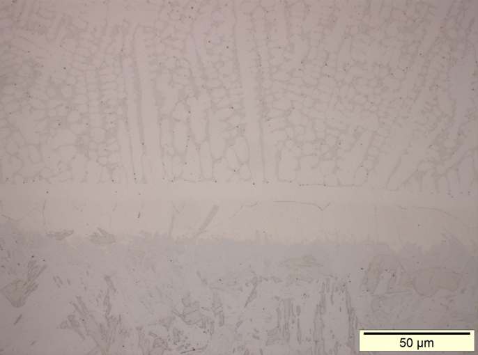 Übergang zwischen der Wärmeeinflusszone des Grundwerkstoffs und der Verschleißschutzschicht aus Stellite
